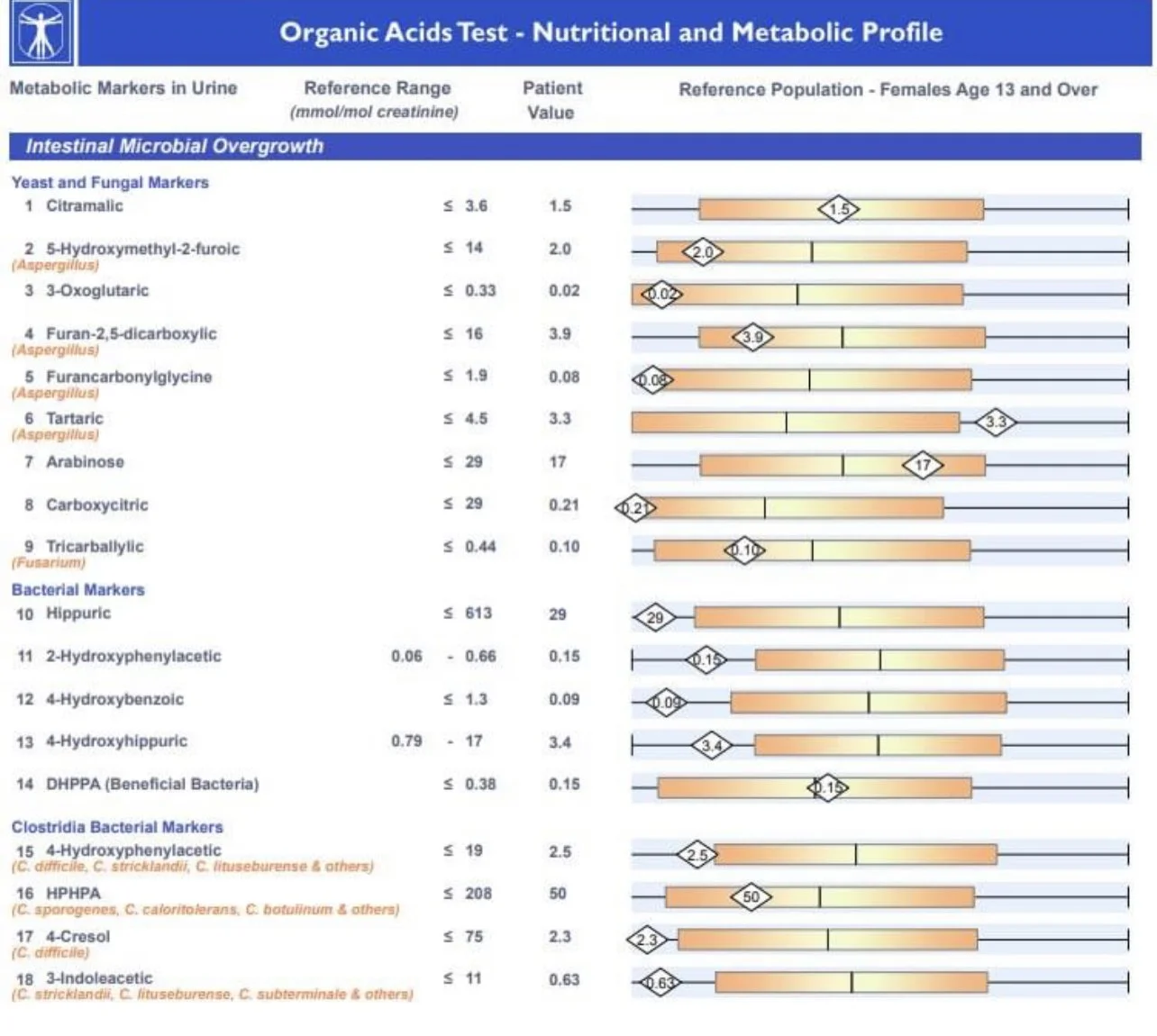 So, naturally, my other favorite test to run for fertility-related clients is called The Organic Acids Test (OAT), which looks largely at the gut, how it’s functioning, and potential bacterias that could be hindering the body’s processes.